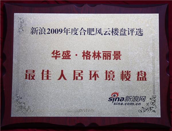 2009年度华盛格林丽景最佳人居环境楼盘(新浪合肥风云楼盘评选)