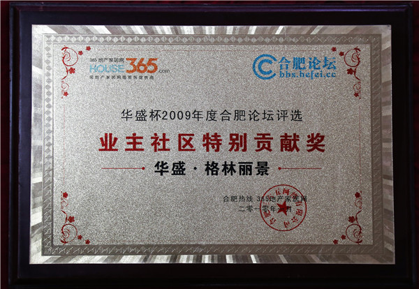 2009年度华盛格林丽景最佳人居环境楼盘(新浪合肥风云楼盘评选)