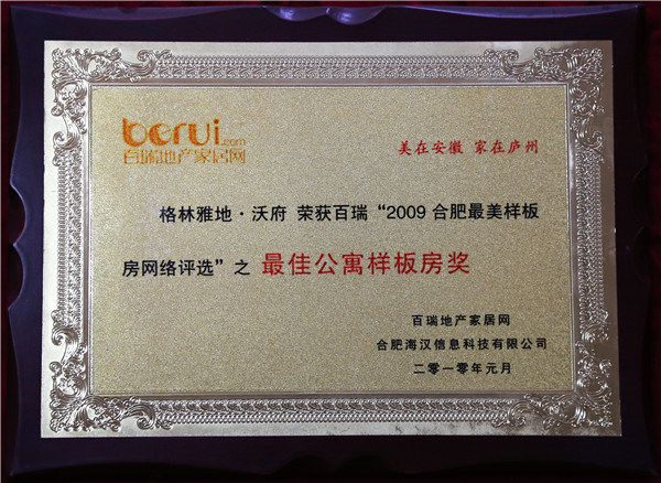 2009年合肥最美样板房网络评选之最佳公寓样板房奖(华盛格林雅地沃府