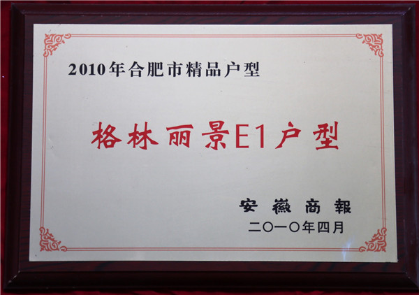 2010年度十大卓越、人气楼盘特别成就奖华盛格林丽景(江淮晨报)