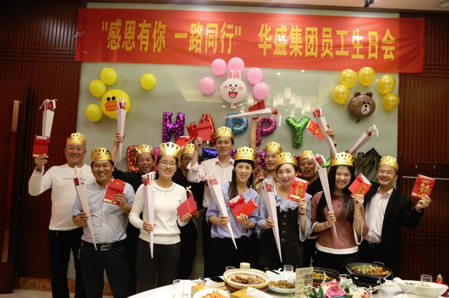 为增加华盛集团公司团队凝聚力,增加员工归属感,推动公司企业文化建设,形成良好的企业向心和凝聚力,促使员工的认识和交流,让每位员工切实感受到华盛集团大家庭的温暖,本次生日会由集团人力资源部举办的以“爱与梦想”为主题的员工生日会活动,并荣幸邀请到集团董事长王汝仙,总裁丁长亮,常务副总裁鲁璐、集团副总裁王辉、赵立春、李莉,谢俊国,钱晓菊等嘉宾,共同为4月生日的员工庆生。本次活动由领导送祝福,吃蛋糕吹蜡烛和送红包三个环节组成。