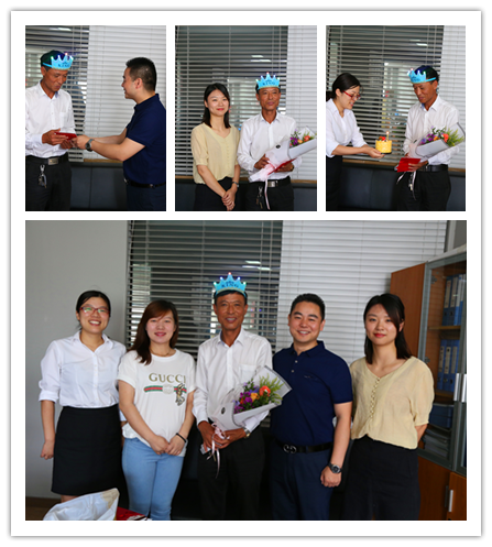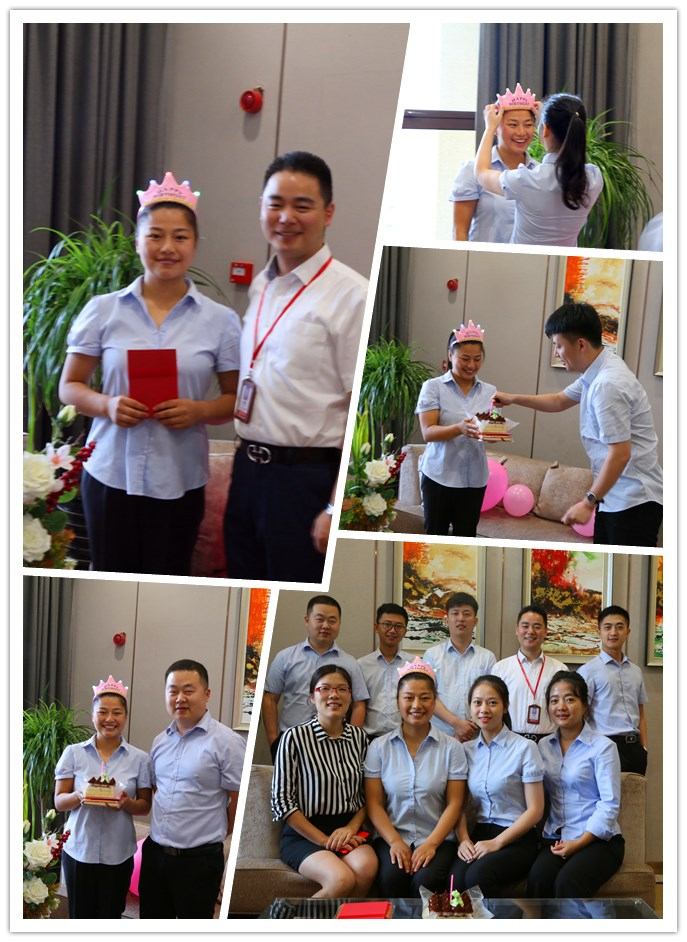 荷香清露坠,柳动好风生。带着董事长和集团领导期盼与祝福,人力资源部和企划来到寿星工作的工位上,为6月份生日的9位寿星送上鲜花、生日礼金、贺卡和生日蛋糕,也送上集团最真挚的祝福。让六月份生日的华盛家人体会一个不一样的生日。