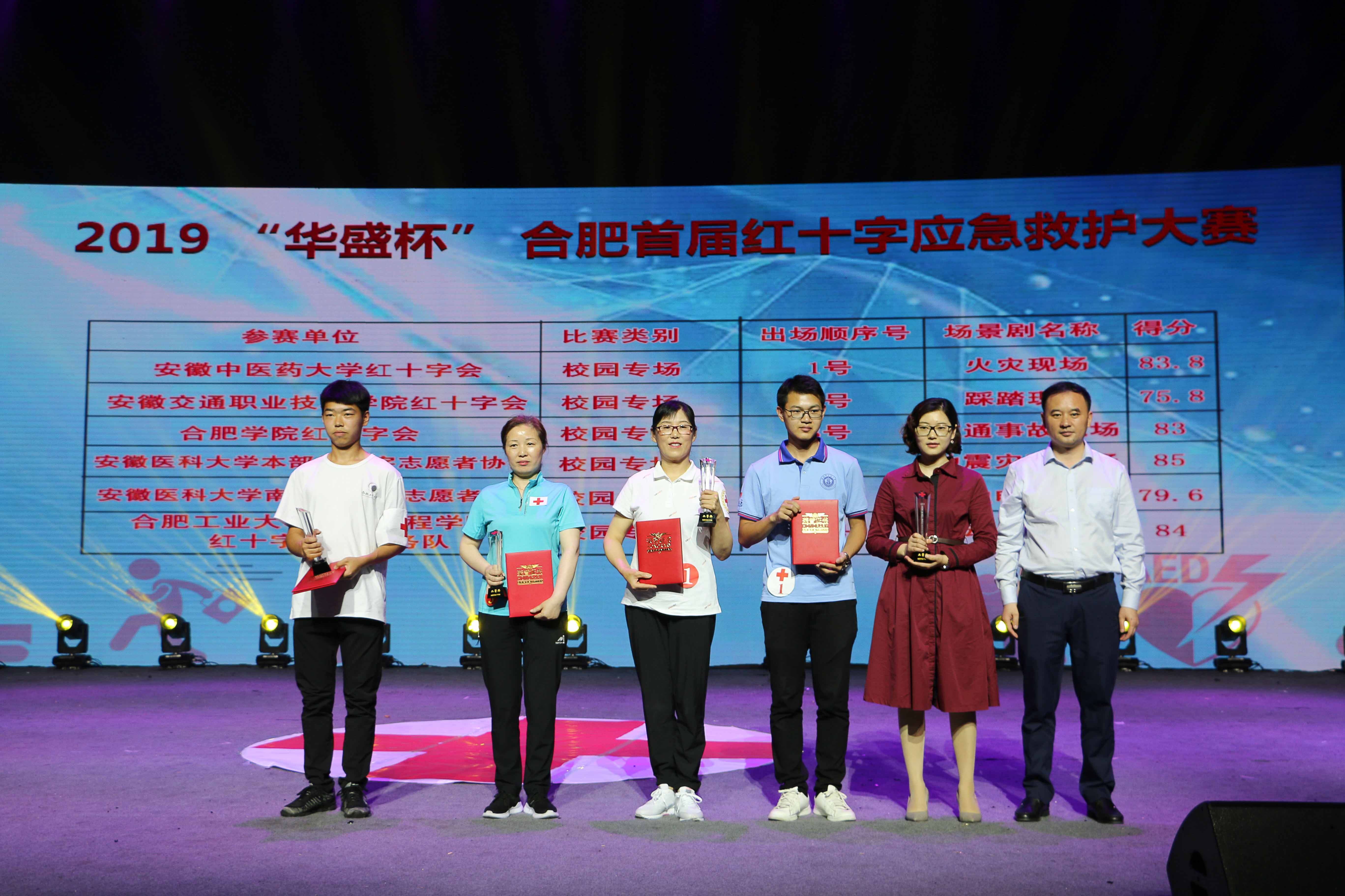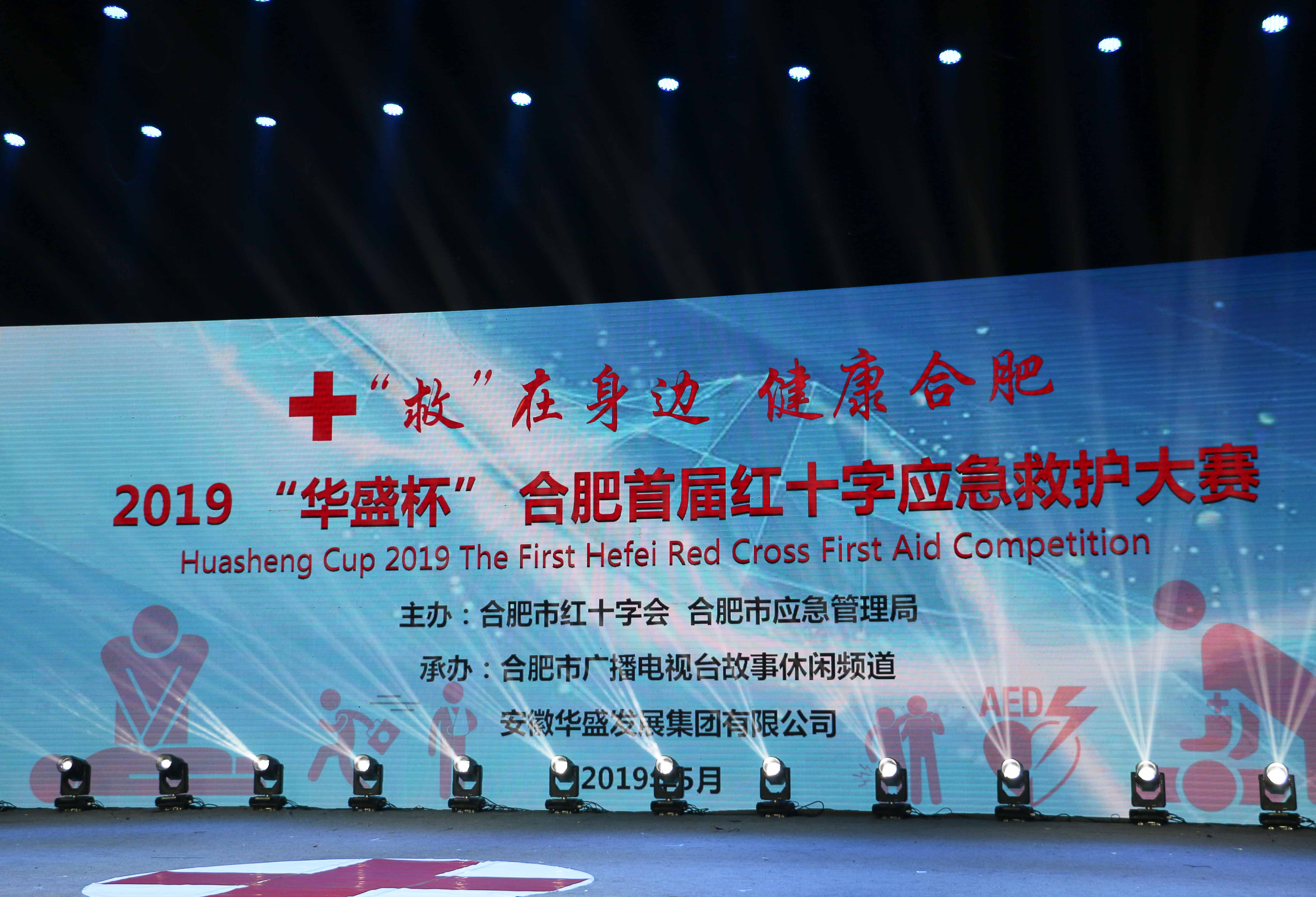 2019年5月19日下午,在合肥市广播电视台举办了合肥市2019年“华盛杯”首届红十字应急救护大赛,经过层层培训和选拔,来自合肥市、区、县红十字会和高校红十字会(红十字志愿服务队)的13支代表队同台竞技,现场模拟呼吸心跳骤停、头顶部出血、骨折,火灾受伤等伤情救治。安徽华盛发展集团有限公司总裁丁长亮先生和市红十字会、市应急管理局等单位领导出席并观看了比赛。