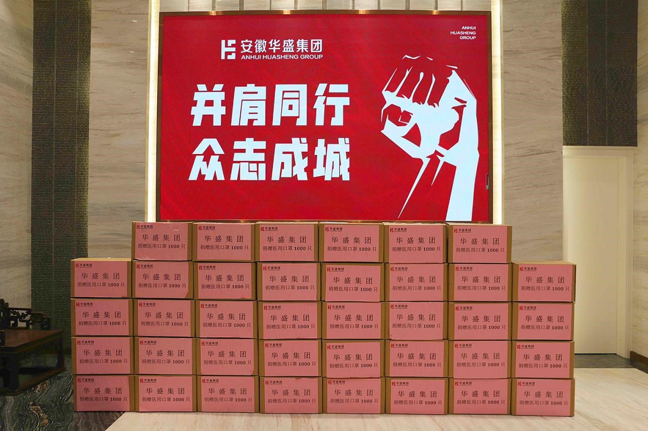 2020年3月9日,华盛集团通过合肥市红十字会定向捐赠了24000只医用外科口罩给肥东疫情防控应急指挥部。同时向肥东县行政服务中心、肥东县店埠镇人民政府、肥东县撮镇镇人民政府、肥东县公安局、肥东县融媒体中心等一线防疫部门捐赠了40000只医用外科口罩,合计捐赠了64000只爱心口罩,总价值32万元。助力政府部门打赢这最后一公里的防疫战!政企同心,众志成城,共同打赢这场战“疫”。