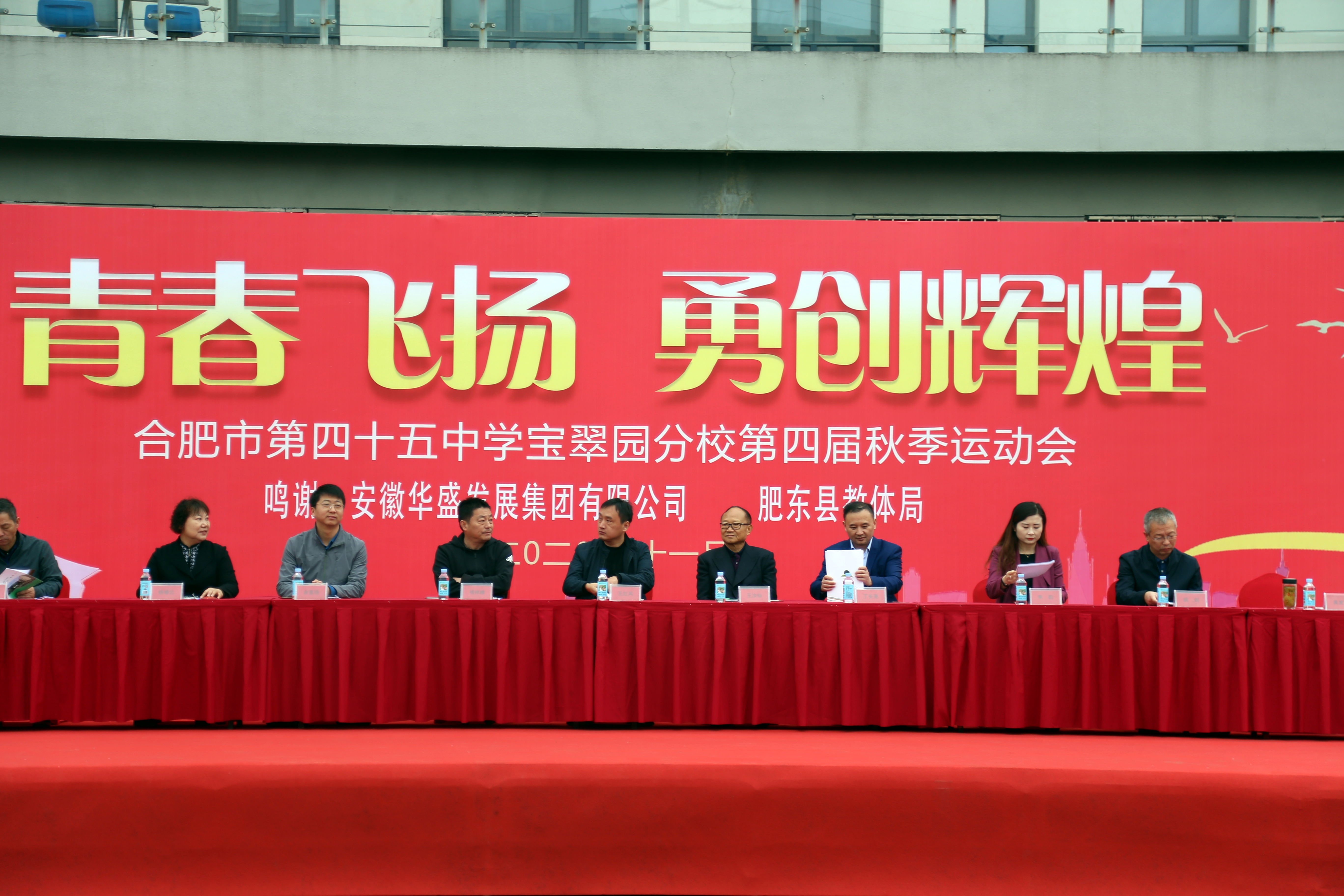 2017年4月,宝翠园校区初中教学楼工程封顶大吉。在此之后,作为学校的名誉校长,王汝仙先生始终关心着全体师生的学习生活,为了给家乡的孩子提供更为优异的教育资源,把合肥市第四十五中(宝翠园分校)做大做强,决定由华盛集团捐资设立华盛励志奖学金,奖励在校就读的优秀学子,希望能借此激励东城的莘莘学子继续努力学习,奋发向上。本次运动会,王汝仙校长无偿捐助10万元,助力宝翠园校区的学生德智体美劳全面发展。
