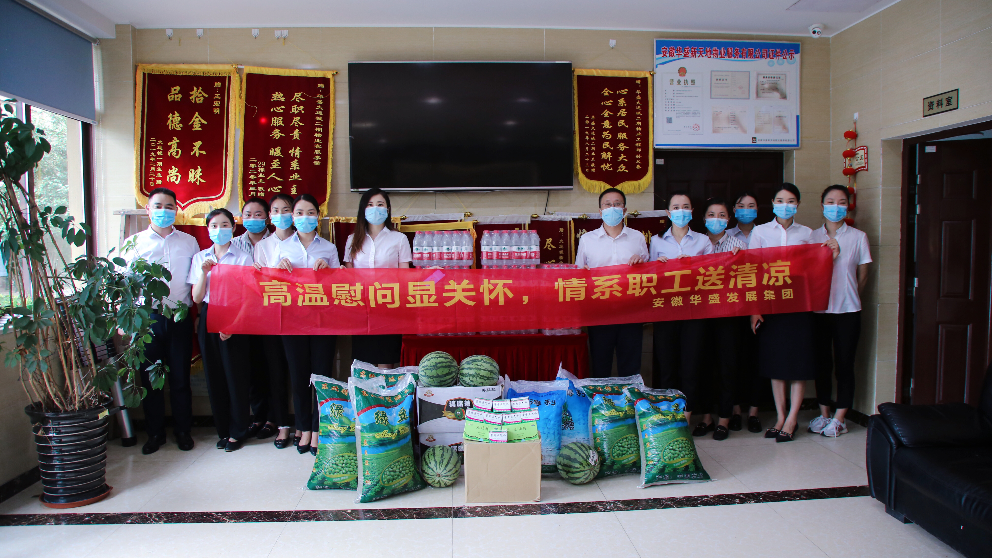 今年的高温天气再次袭来,华盛集团的各个项目工地和各分、子公司的基层服务部门仍在紧锣密鼓、热火朝天地持续推进生产和服务工作。此次一年一度的夏季高温慰问活动,集团领导把清凉送到了物业公司、商管公司、建华文化活动中心、华盛·和睦府、华盛·江山御府等项目的基层一线,把集团的关怀送到了基层员工身边。