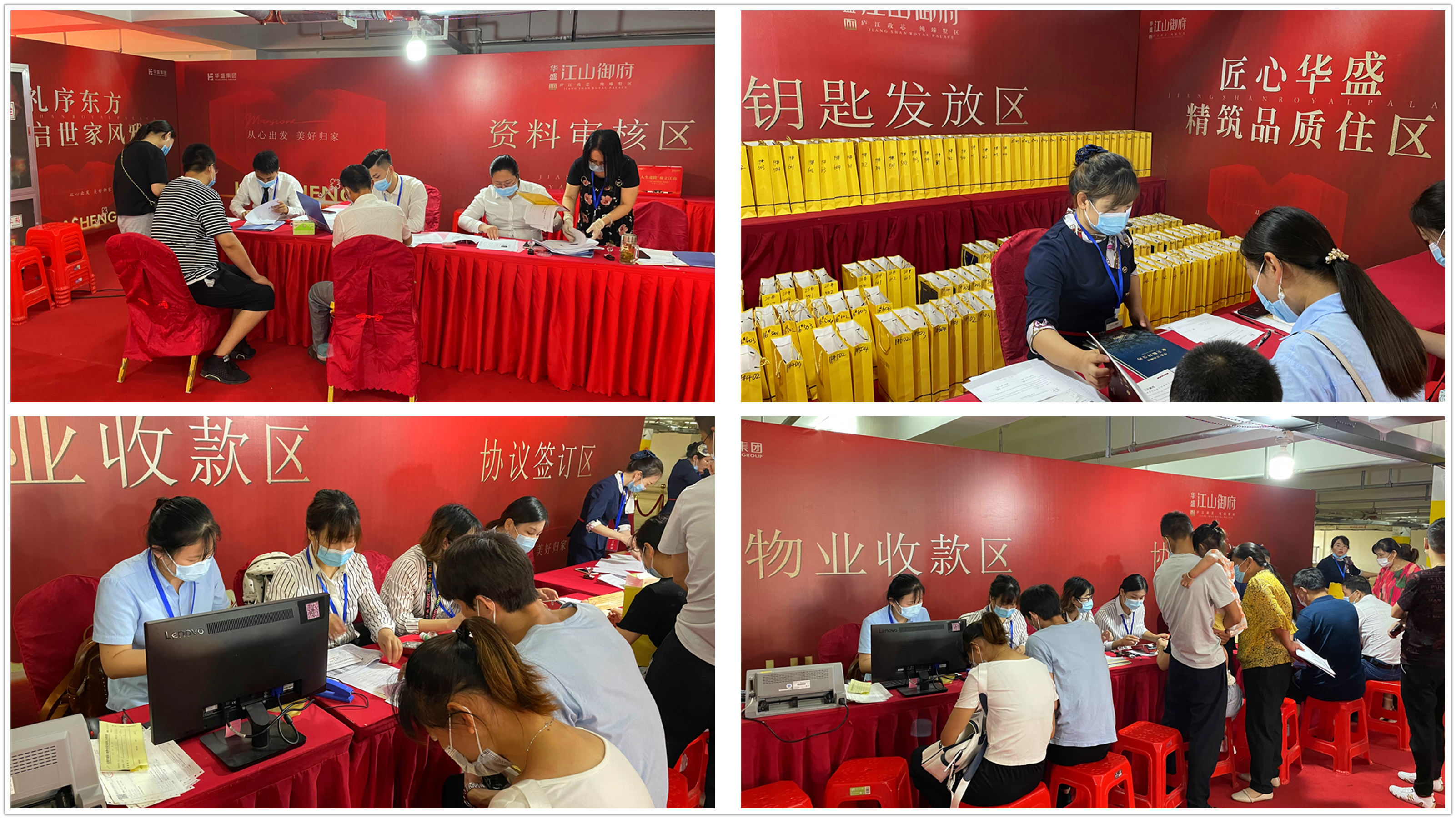 2021年8月29-30日,心归家至,府迎君归,华盛·江山御府一期二组团盛大交付。华盛集团兑现了对所有业主的庄严承诺,为期两天的交房工作顺利完成!