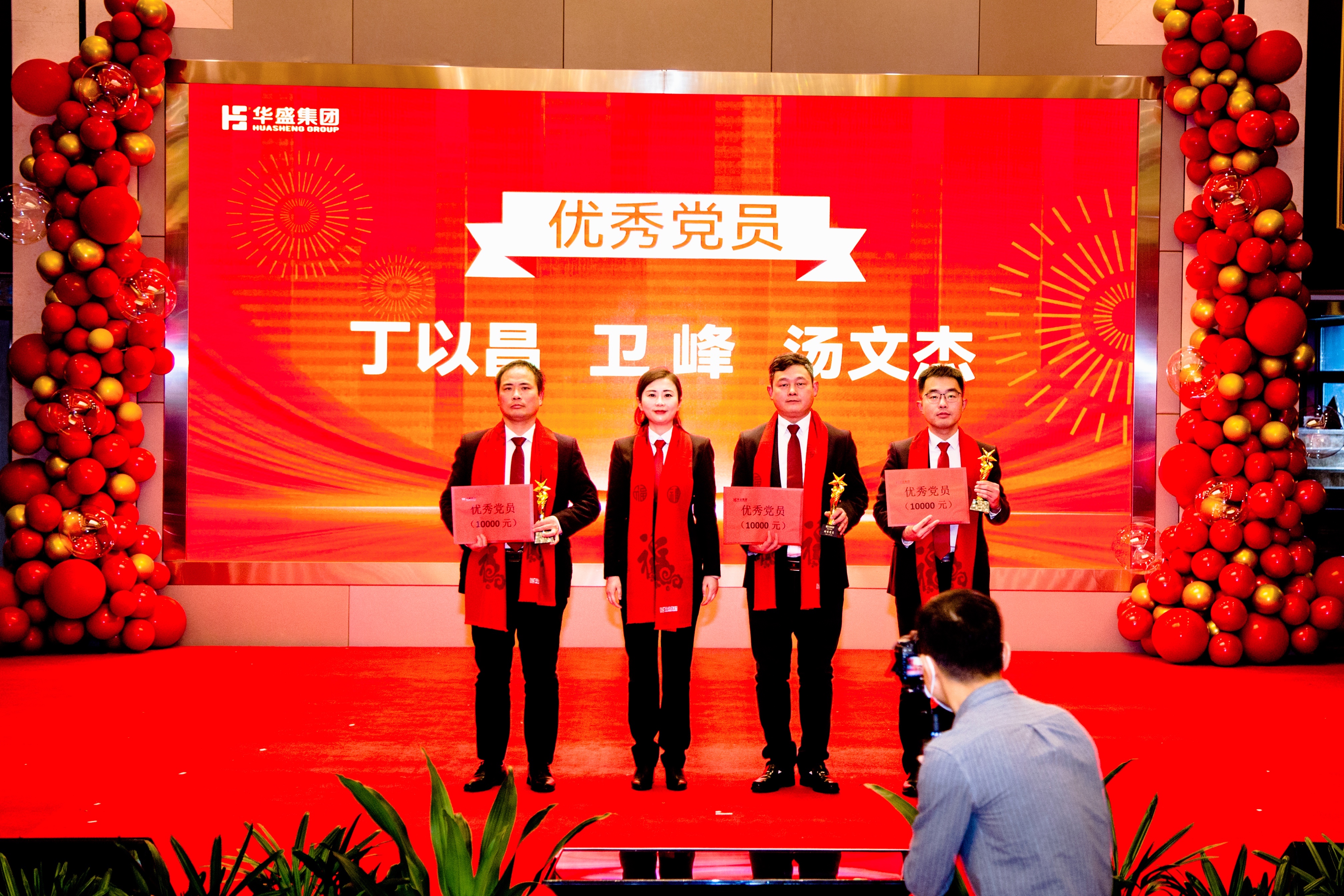 接下来,晚会进入到了激动人心的颁奖环节,集团公司为优秀的华盛人,为作出杰出贡献的华盛功臣们授予了荣誉,并颁发了奖金。这些奖项包括:物业公司先进个人、物业公司忠诚卫士、丘雨公司销售之星、商管公司先进个人、金海公司优秀经理人、金海公司先进个人、集团优秀党员、集团先进个人、集团优秀经理人、集团优秀高管、董事长特别奖等荣誉,同时,华盛集团还为服务满十年及以上的员工颁发了“华盛勋章”,并为2022年首届员工乒乓球比赛的各位获奖选手颁发了奖杯。这次的颁奖仪式,既肯定了大家的工作,也激励了大家的热情,更彰显了华盛的实力。