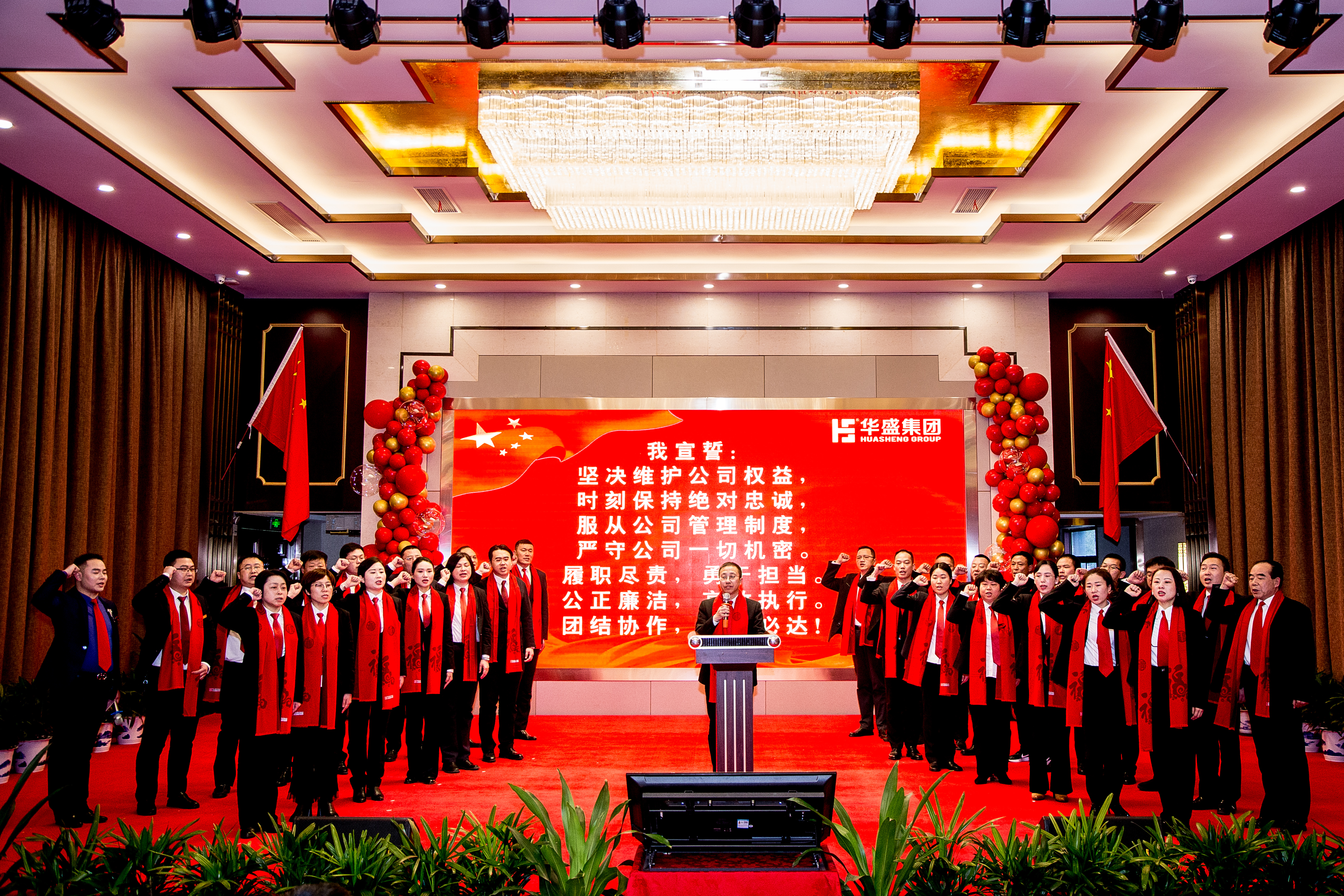 颁奖仪式之后,华盛集团管理层集体上台宣誓。十六年奋斗、十六年追求,十六年风雨,十六年跨越。华盛集团这一年来一路高歌前行,离不开集团管理层勤勤恳恳的工作和赤诚一片的忠心,集团管理层是华盛集团发展的核心力量和中流砥柱,对司忠诚,能打胜仗是每一位华盛经理人应有的使命感和责任感。