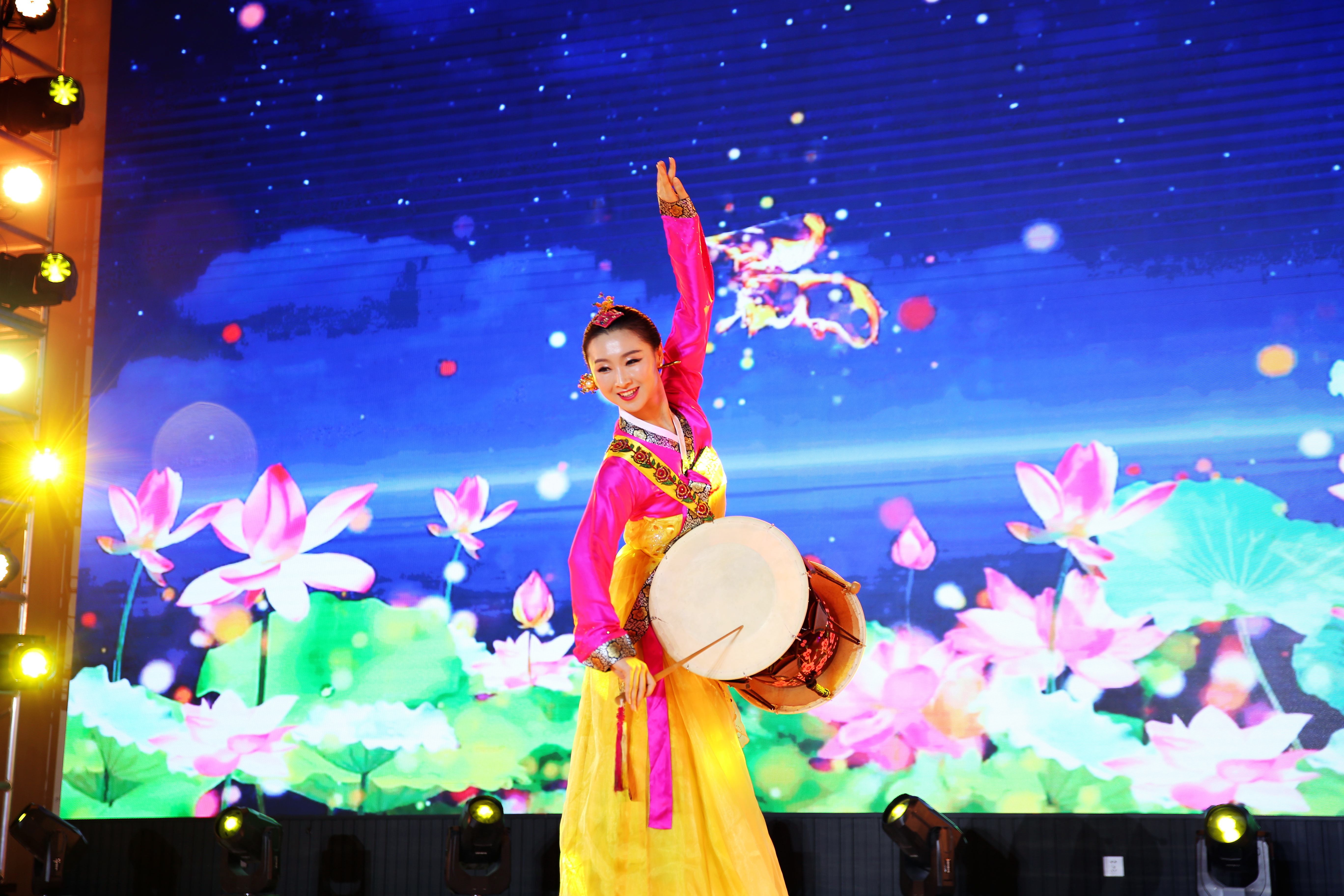 接着,延边歌舞团和UN舞蹈团的艺术家们为我们带来了各种精彩的艺术表演。这些节目分别是女声四人唱《新春的祝福》、《红旗飘飘》、舞蹈《难忘的那一天》、男声独唱《飞得更高》、《图们江赞歌》、男女二人唱《神话》、长鼓舞独舞《长鼓舞》、现代舞 《冠军》、女声独唱《欢腾的海兰江》。