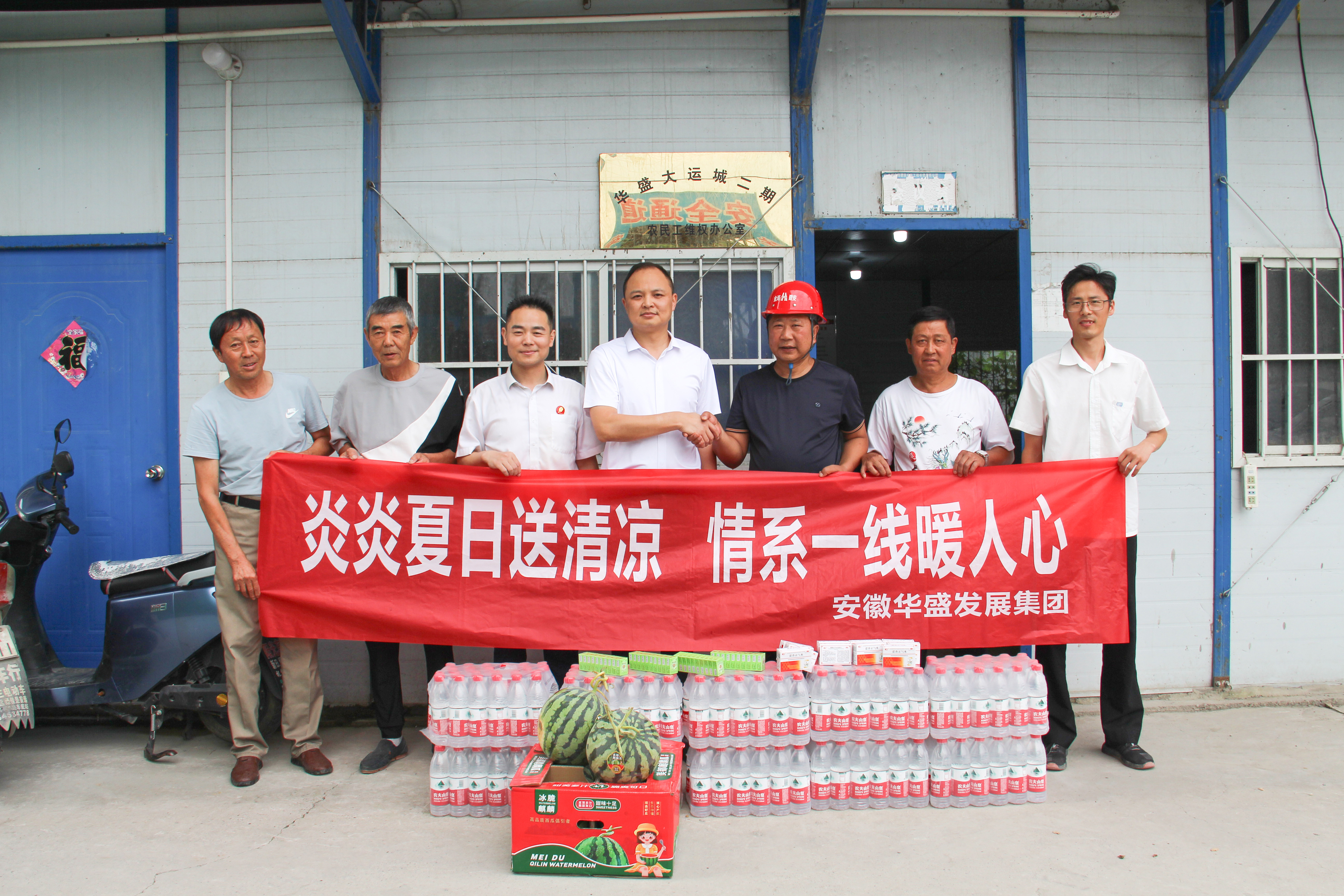 盛夏时光,骄阳似火。炎热的夏季高温天气给奋战在一线的员工带来了严峻的考验,也深深牵挂着领导们的心。为切实做好夏季防暑降温工作,保障一线员工身体健康,确保安全施工,2023年7月26日-27日,华盛集团常务副总裁王辉、集团人力资源部等一行人来到集团各分、子公司和项目工地,开展高温慰问活动,多措并举为一线员工“送清凉”,以“温情关爱”致敬坚守,确保高温天气广大员工安全健康度夏。