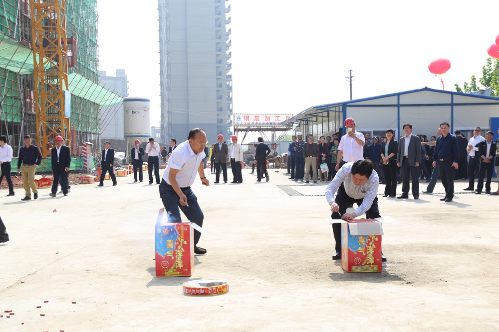 肥东县相关领导及各工程合作单位前来祝贺,集团董事长携全体员工也一起来到现场共同见证这喜庆的时刻。